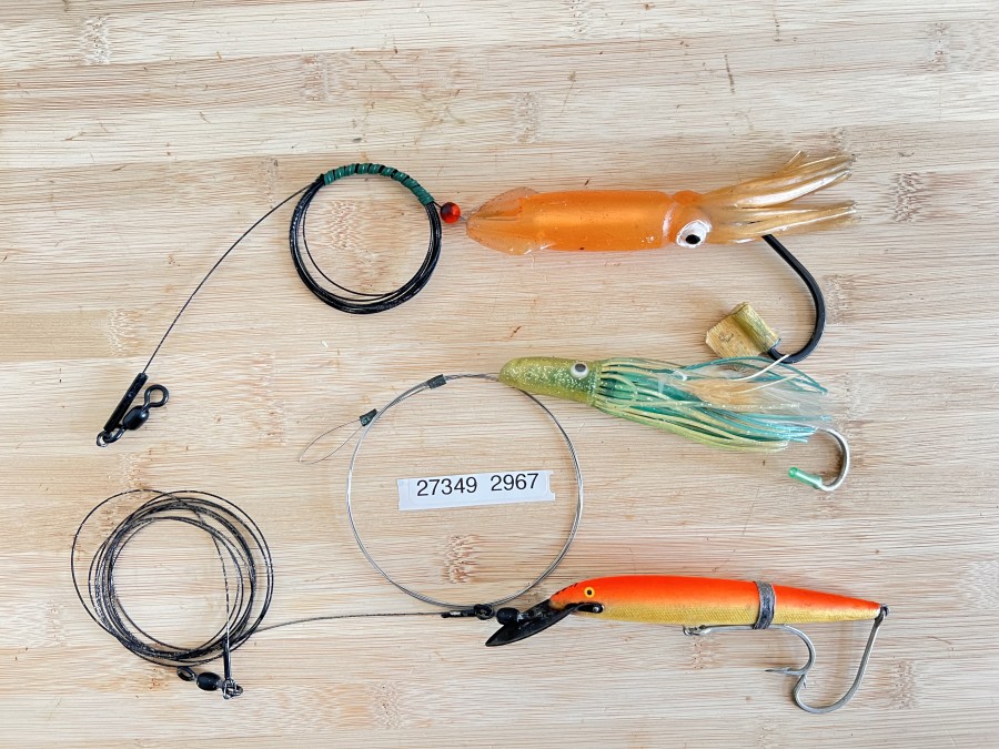 4 Meeresköder, Un-Reel Lures, Dorado Lure, 1 Williamson Soft Sailfish Catcher, Rigged, 1 Williamson Tuna Catcher Rigged, Trollinggewicht Surfing 60, AB Fixfabriken Sweden